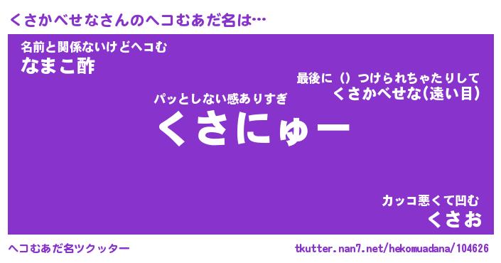 | 胡散臭い通販商品みたいなあだ名 | 『必ず成功する水晶球…その名も「くさかべせな」』 |