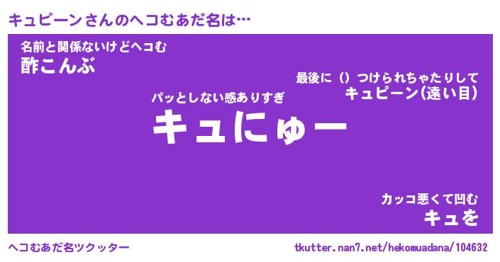 | ファンタジー風あだ名 | 『キュフェル』『エターナルキュピーンー』 |