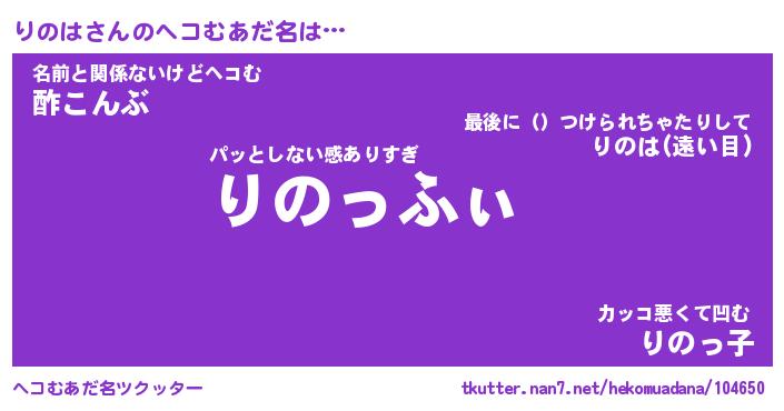 | 意味不明あだ名 | 『ペロリンりのは』『りのはフォーエバー』 |