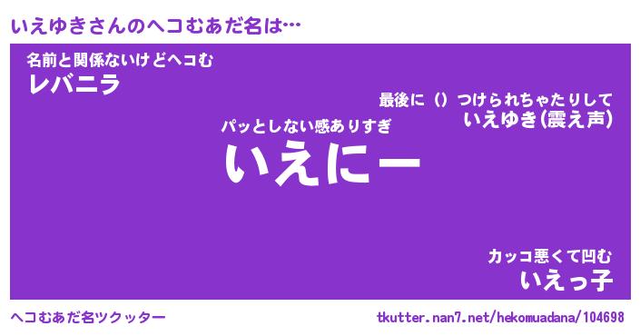 | 意味不明あだ名 | 『ペロリンいえゆき』『永久保存いえゆき』 |