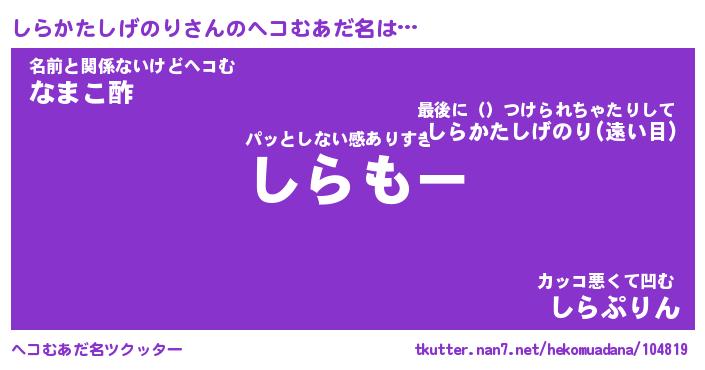 | 胡散臭い通販商品みたいなあだ名 | 『モテモテ間違いなし水晶球…その名も「しらかたしげのり」』 |