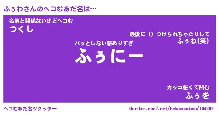 | 男性向けラノベタイトル風あだ名 | 『ふぅわの憂鬱』 |