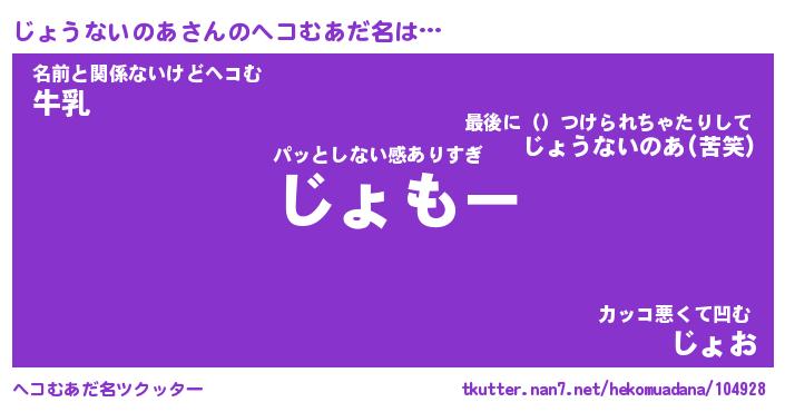 | ポケモン風あだ名 | 『ジョチュウ』『ジョウダネ』 |