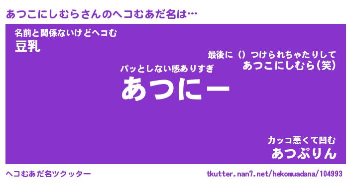 | 意味不明あだ名 | 『ペロリンあつこにしむら』 |