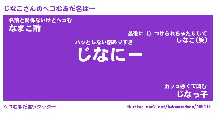 | 意味不明あだ名 | 『ペロリンじなこ』『じなこフォーエバー』 |