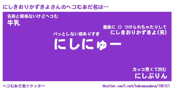 | ポケモン風あだ名 | 『ニシチュウ』『ニシキダネ』 |