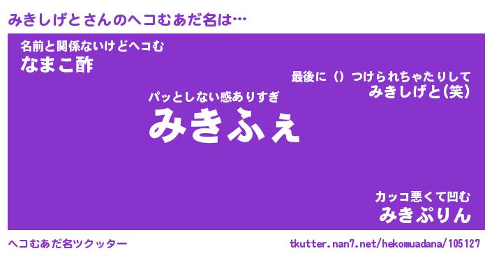 | 胡散臭い通販商品みたいなあだ名 | 『モテモテ間違いなし水晶球…その名も「みきしげと」』 |