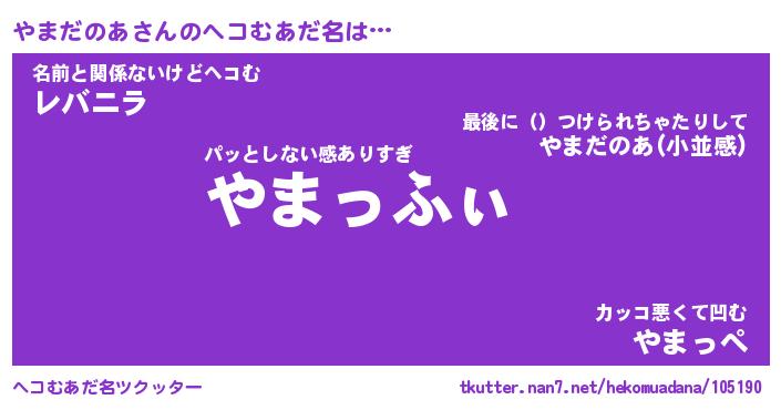 | 恥ずかしいあだ名 | 『プリティーやまだのあ』『やまっちょ』 |