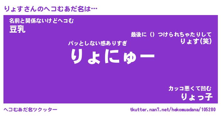 | ファンタジー風あだ名 | 『リョフェル』『エターナルリョスー』 |