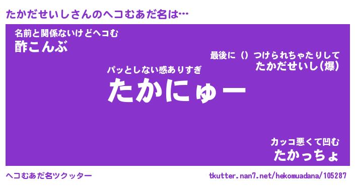 | 男性向けラノベタイトル風あだ名 | 『たかだせいしの憂鬱』 |