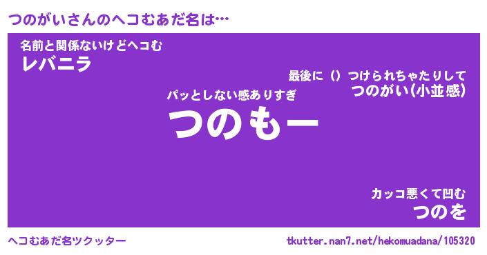 | 意味不明あだ名 | 『ペロリンつのがい』『永久保存つのがい』 |