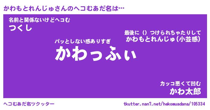 | ポケモン風あだ名 | 『カワチュウ』『カワモダネ』 |