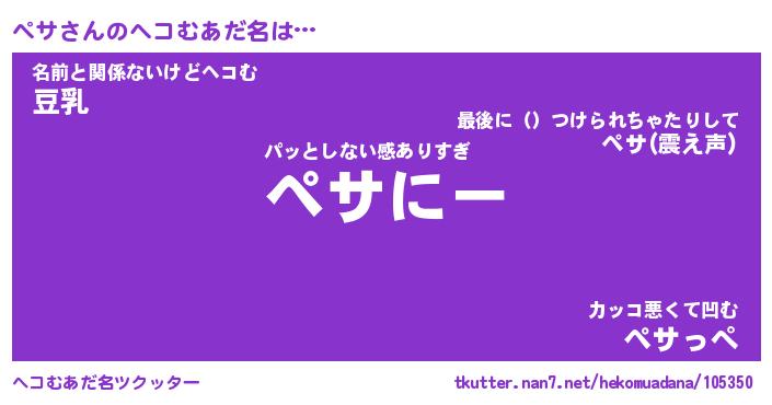 | 2回繰り返すあだ名 | 『ペサペサ』『ペペササ』『いそいそ』 |
