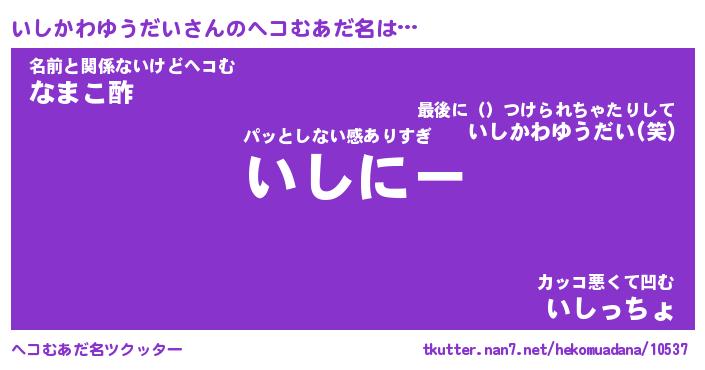 | 男性向けラノベタイトル風あだ名 | 『いしかわゆうだいの憂鬱』 |