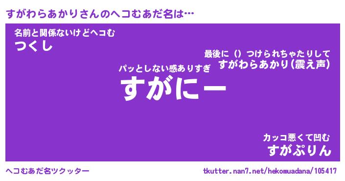 | 意味不明あだ名 | 『ペロリンすがわらあかり』 |