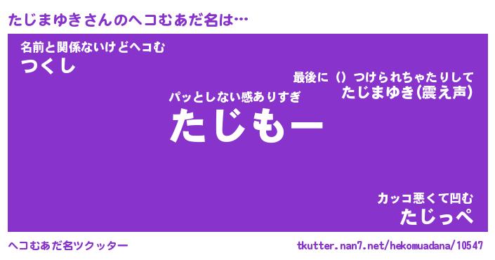 | ヒーロー風カッコイイあだ名 | 『スーパータジマユキ』『暗黒騎士タジ』 |