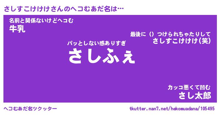 | 胡散臭い通販商品みたいなあだ名 | 『必ず成功する水晶球…その名も「さしすこけけけ」』 |