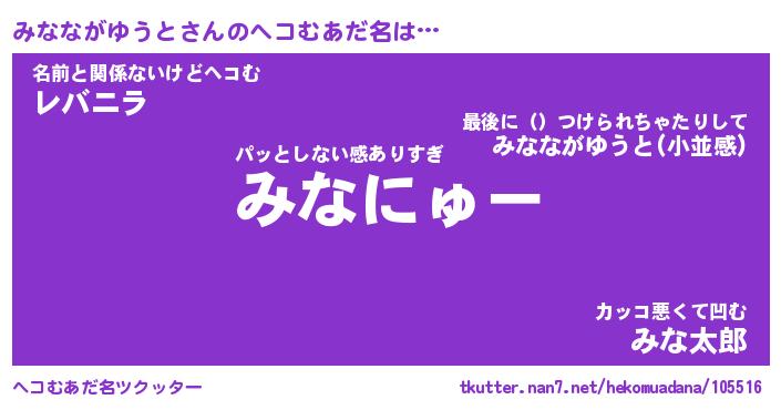 | ヒーロー風カッコイイあだ名 | 『スーパーミナナガユウト』 |
