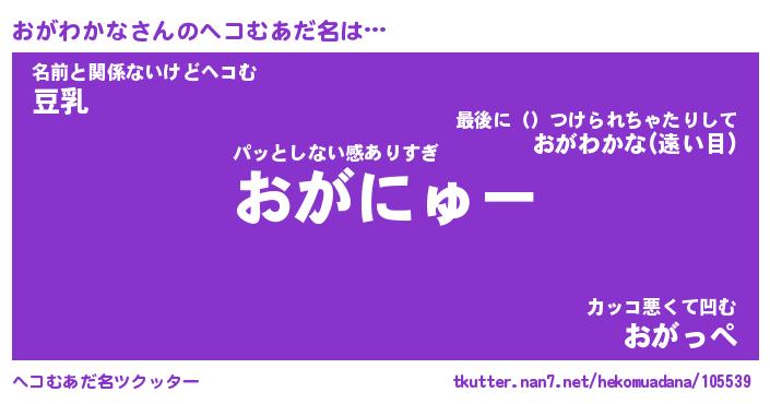 | 2回繰り返すあだ名 | 『おがおが』『おおがが』『ぐうぐう』 |
