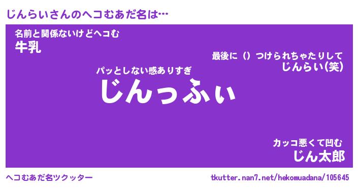 | 意味不明あだ名 | 『ペロリンじんらい』『永久保存じんらい』 |