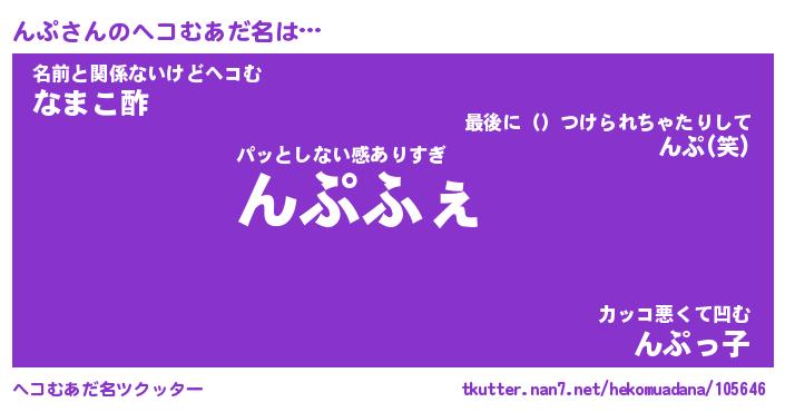 | ポケモン風あだ名 | 『ンプチュウ』『ンプダネ』『ヒンプ』 |
