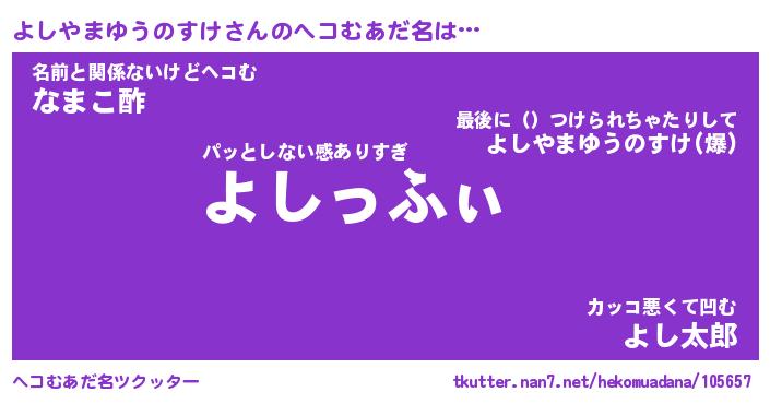 | 男性向けラノベタイトル風あだ名 | 『よしやまゆうのすけの憂鬱』 |