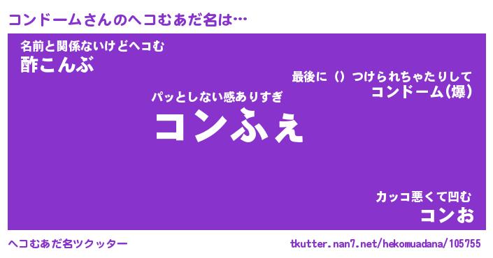 | ヒーロー風カッコイイあだ名 | 『スーパーコンドーム』『暗黒騎士コン』 |