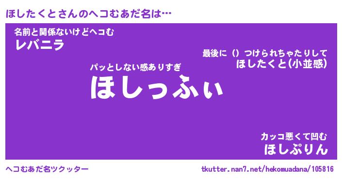 | ファンタジー風あだ名 | 『ホシフェル』『エターナルホシタクトー』 |