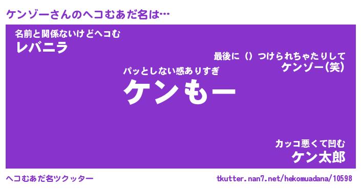 | 意味不明あだ名 | 『ペロリンケンゾー』『永久保存ケンゾー』 |