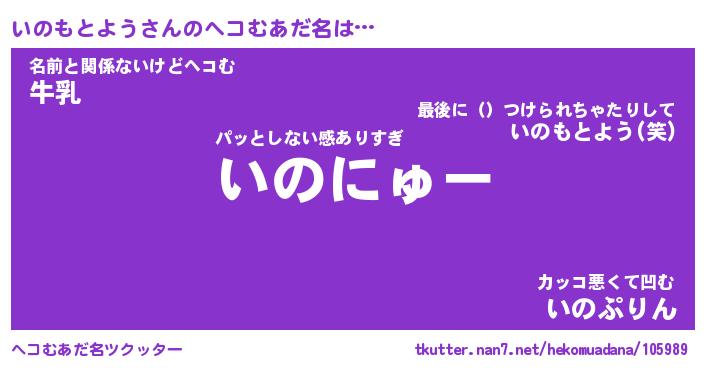| 男性向けラノベタイトル風あだ名 | 『いのもとようの憂鬱』 |