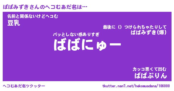 | 2回繰り返すあだ名 | 『ばばばば』『ばばばば』『いそいそ』 |