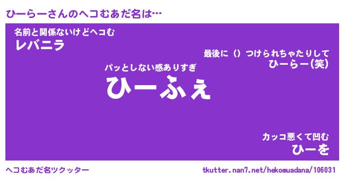 | 意味不明あだ名 | 『ペロリンひーらー』『永久保存ひーらー』 |