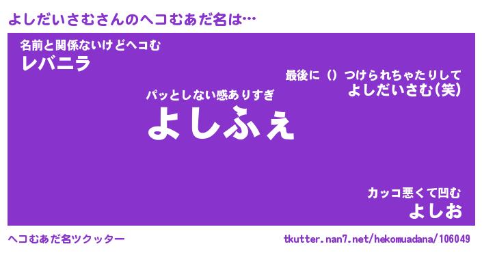 | 肩書あだ名 | 『よしだいさむCEO』『よしだいさむ団長』 |
