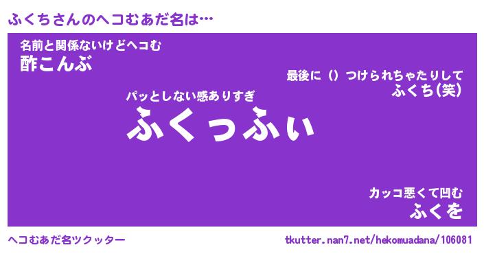 | ポケモン風あだ名 | 『フクチュウ』『フクチダネ』 |