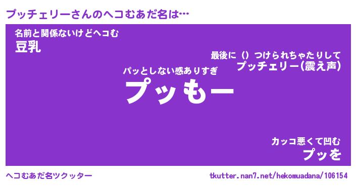 | ヒーロー風カッコイイあだ名 | 『スーパープッチェリー』『銀牙騎士プッ』 |