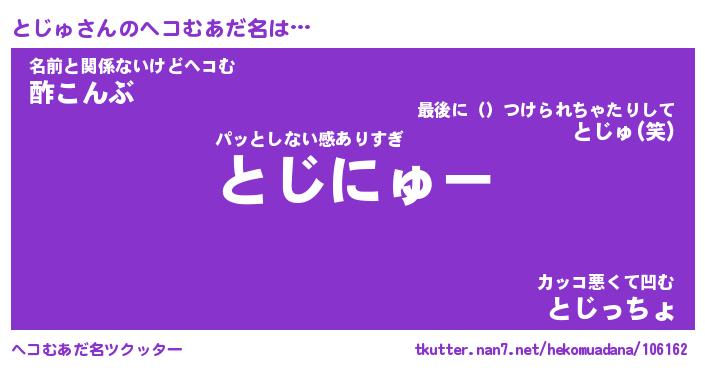 | 恥ずかしいあだ名 | 『プリティーとじゅ』『とじっちょ』 |