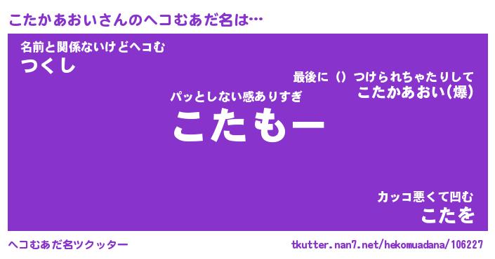 | ヒーロー風カッコイイあだ名 | 『スーパーコタカアオイ』『魔戒騎士コタ』 |