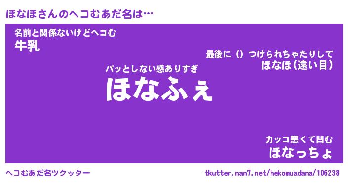 | 意味不明あだ名 | 『ペロリンほなほ』『ほなほフォーエバー』 |