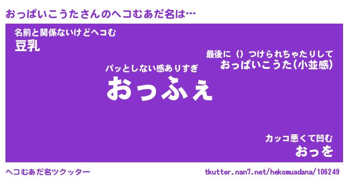| 男性向けラノベタイトル風あだ名 | 『おっぱいこうたの憂鬱』 |