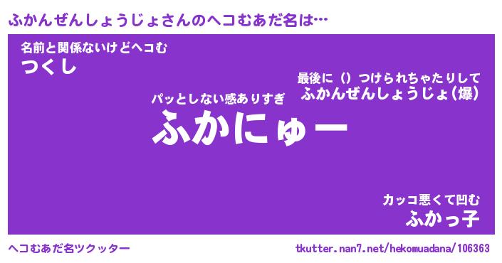 | ポケモン風あだ名 | 『フカチュウ』『フカンダネ』 |