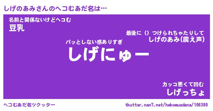 | 意味不明あだ名 | 『ペロリンしげのあみ』 |