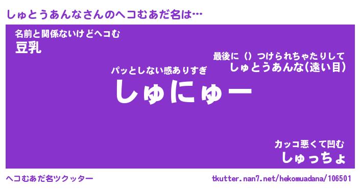 | 2回繰り返すあだ名 | 『しゅしゅ』『ししゅゅ』『ぬらぬら』 |