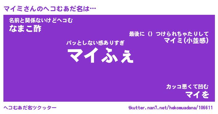 | ポケモン風あだ名 | 『マイチュウ』『マイミダネ』 |