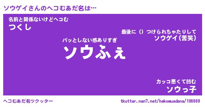 | ポケモン風あだ名 | 『ソウチュウ』『ソウゲダネ』 |