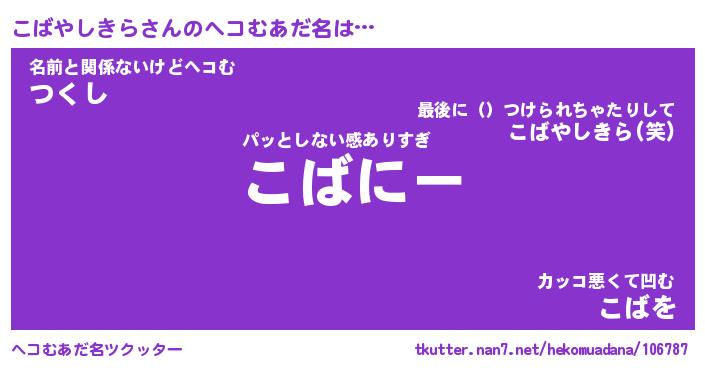 | ツイッター | こばやしきらさんのツイッターID『namakemono_man』 |