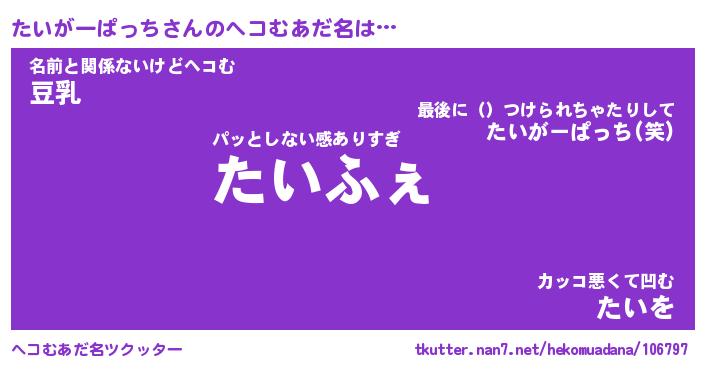 | 欧米人風あだ名 | 『マイケルたいがーぱっち』 |