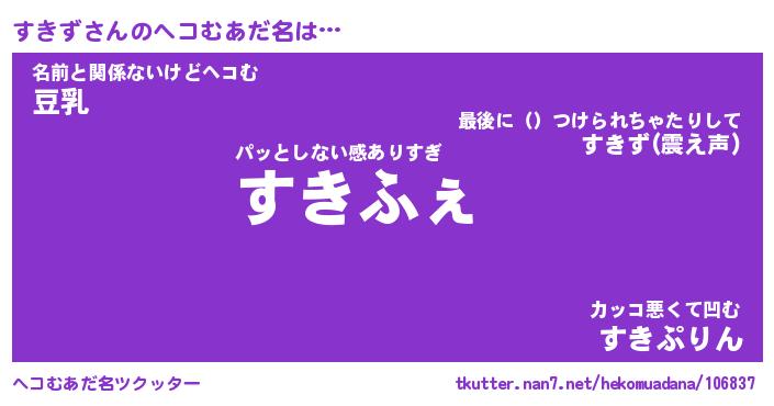 | 意味不明あだ名 | 『ペロリンすきず』『すきずフォーエバー』 |