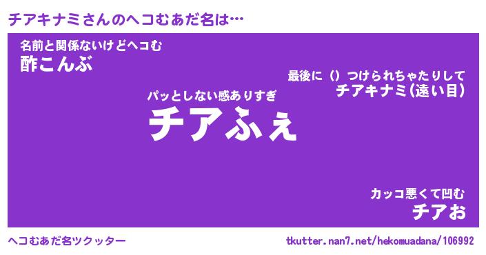 | ファンタジー風あだ名 | 『チアフェル』『エターナルチアキナミー』 |