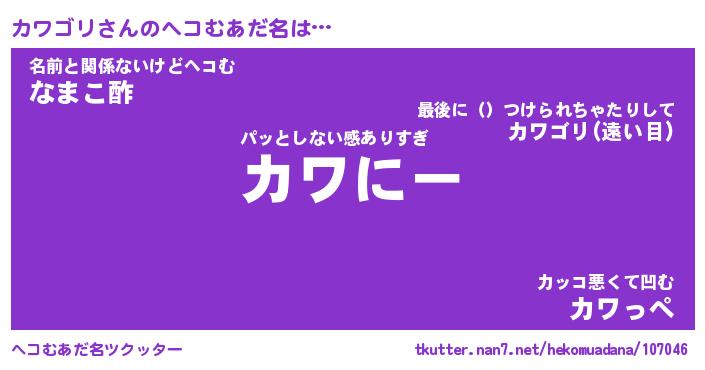 | ファンタジー風あだ名 | 『カワフェル』『エターナルカワゴリー』 |