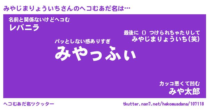 | 男性向けラノベタイトル風あだ名 | 『みやじまりょういちの憂鬱』 |